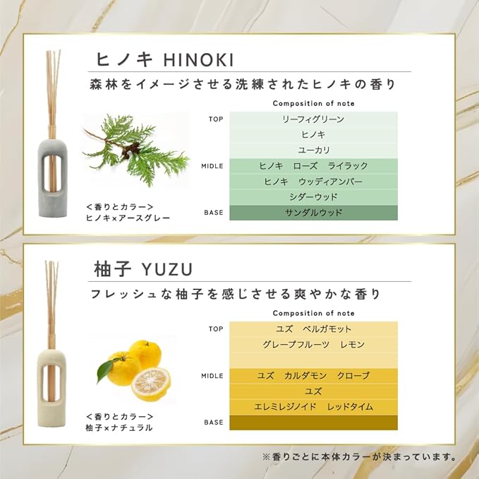 モダンな雰囲気のストーンと試験管を組み合わせたリードディフューザー。 玄関やトイレはもちろん、リビングなどでもインテリアをドレスアップ。 和の香りを楽しめる檜の香りと落ち着いたグレーのストーンの組み合わせです。 ギフトとしてもおすすめです。