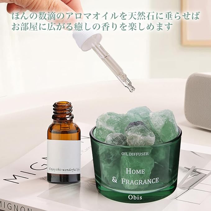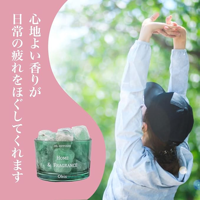 【癒されるアロマな空間】お部屋に広がる癒しの香りを楽しみたいなら、ほんの数滴のアロマオイルを天然石に垂らしてみてください。たった6滴から8滴のオイルで、その心地よい香りが空間いっぱいに満たされ、日常の疲れをほぐしてくれます。オイルの滴数を調節することにより、あなたのお好みの強さで香りを楽しむことが可能です。