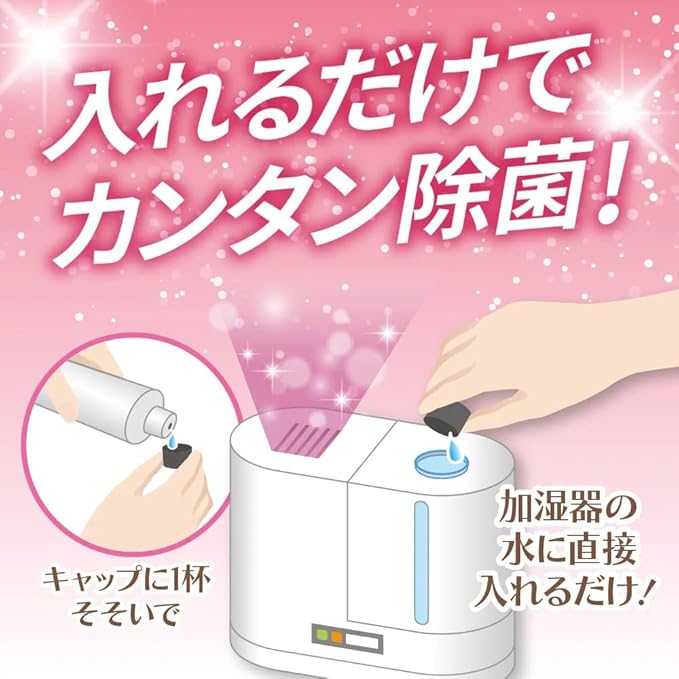 加湿器タンクに水と本品を入れるだけで雑菌をしっかり除去。