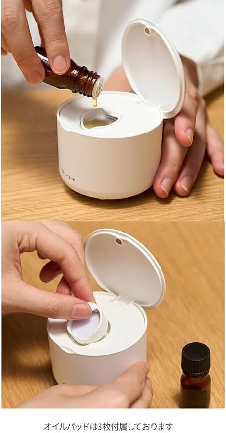 蓋を開け、エッセンシャルオイルを垂らすだけで本格的なアロマ空間を