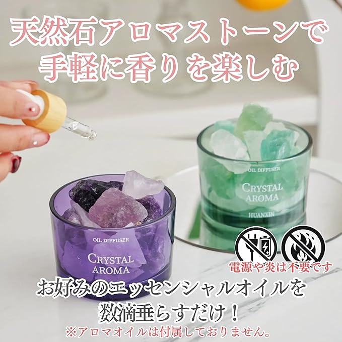 【天然石のアロマストーン】 アロマオイルを数滴垂らすだけで、天然石がオイルを吸収し、ふんわりと優しい香りを広げます。火や電気を使わず、手軽にアロマを楽しめるため、リラックスしたいときや気分を切り替えたいときにぴったりです。