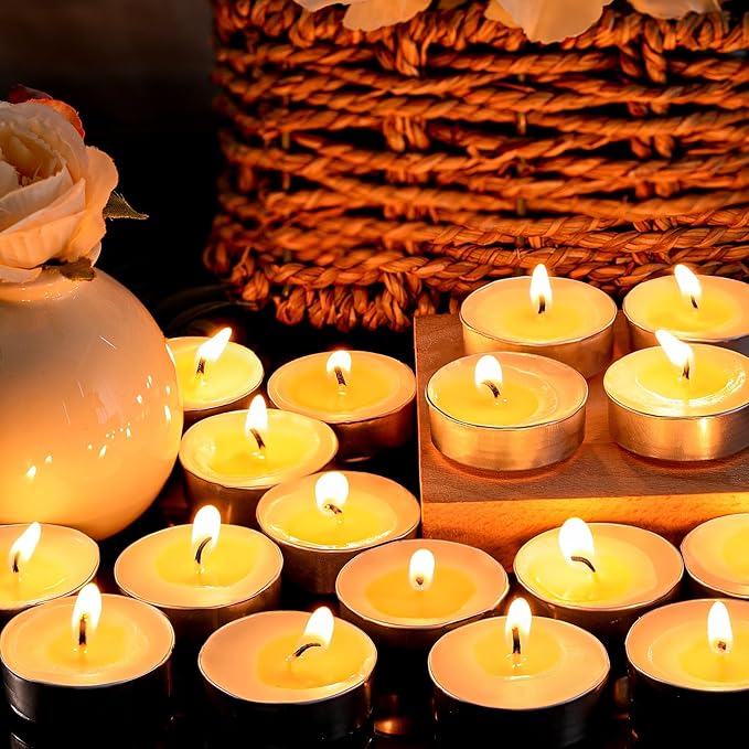 【天然植物成分で、安全かつ負担なし】LETINEのティーライトキャンドルは天然パームワックスと 100% 綿製の芯を使用しています。燃焼時にも有害物質を放出しにくく、お子様がいらっしゃるご家庭やペットをお飼いのご家庭でも安心してご使用いただけます。100% 綿製の芯は燃焼が安定し、無煙で環境に優しく、使用時の安全性と快適さを大幅に高めます。