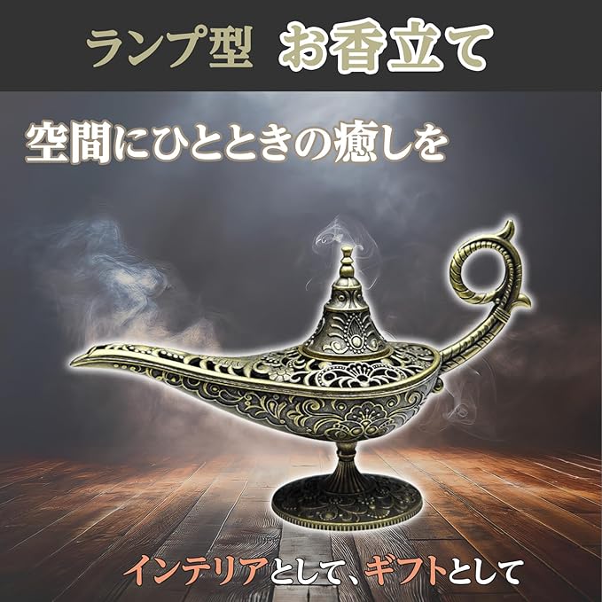 ランプ型のお香立ては、香りと共に癒しのひとときを演出します。デザイン性にも優れており、エキゾチックなデザインが和洋問わずさまざまな空間に馴染みます。手のひらサイズで置く場所を選ばないのもポイントです。