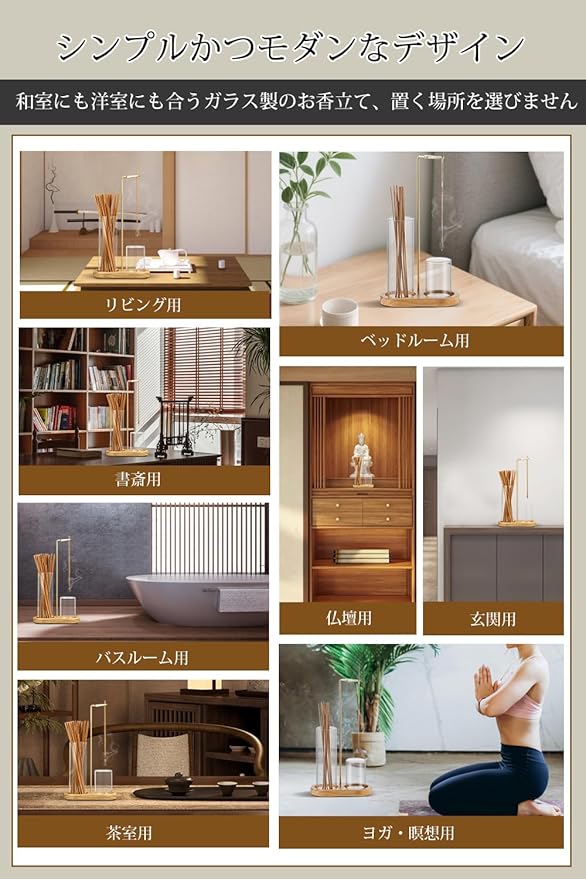 MsiDtsoy【檀香を贈る】灰こぼれ防止 お香立て ガラス おしゃれ ヨガ/瞑想/書斎/インテリア用 友人や家族へのプレゼントに最適 癒しの雰囲気を演出するホームデコレーション アロマ 線香立て おこうたて お香たて | etshop