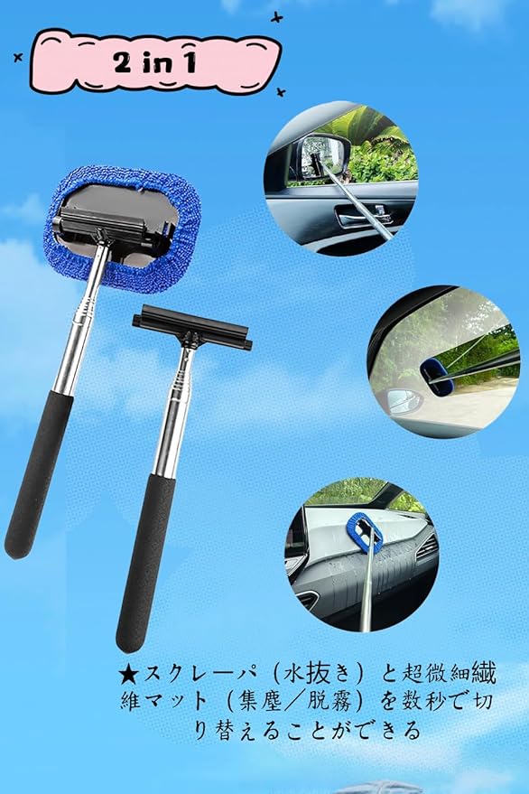 【製品の詳細】伸縮可能な自動車バックミラーワイパー*1個、交換可能な超微細繊維マット*2個。この使いやすいフロントガラスクリーニングツールは、日常の自動車クリーニングニーズを簡単に満たします。