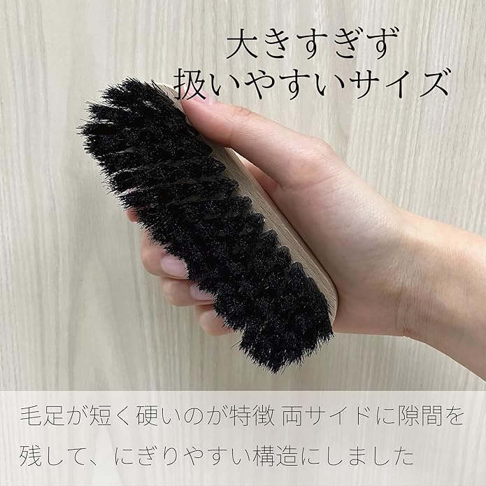 【上質な豚毛】毛足が短く硬いのが特徴 両サイドに隙間を残しにぎりやすい構造にしました
