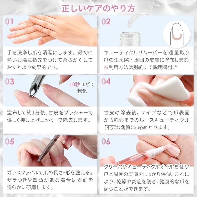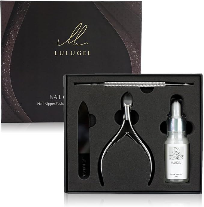 【業務用卸10年以上の実績】LULUGEL甘皮処理セットDXは、専属ネイリスト、提携サロンに何度もサンプル提供し厳選したネイルケアセットです。キューティクルリムーバーは素早く甘皮をふやかしその後のケアを容易にします。ニッパー 甘皮は爪切りニッパーとしても威力を発揮します。ネイルプッシャーもプロ用の先端がとがっていないカーブ形状となっておりプロ好みの仕上がりが実現できるキューティクルプッシャーです。ガラス製の爪やすりはジェルネイルをしないときも自爪をピカピカに輝かせます。ネイル道具、セルフネイルセットの一つとして加えて頂けますと幸いです。