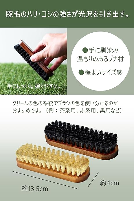 シューズについた汚れを落とし、スエードやヌバックなどの毛並みをそろえる為の靴に優しい豚毛(黒毛)を使用した、ドイツ製靴ブラシです。コロンブス ジャーマンブラシ6が遂に解禁。