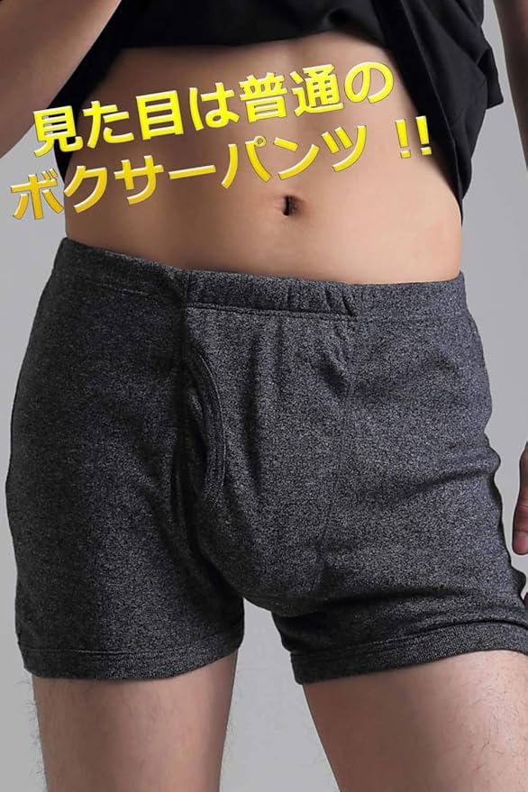 【こんなお悩みありませんか?】トイレの後、尿がズボンにしみないか不安(尿ジミ)…そんな「おっかけ漏れ」「ちょい漏れ」防止のお悩み解決ボクサーパンツ。履きごこちが柔らかく、肌ざわりが滑らかな、お洗濯しても型崩れしにくい下着です。※軽失禁機能はありません。【毎日快適に】前当て部分には、尿シミ対応の吸水性がある「3層構造当て布」が付いています。前当て裏側はメッシュ素材で通気性抜群。「抗菌」「消臭」加工も施されており、雑菌の繁殖を抑制し汗などの臭いも防いでくれます。いつも清潔・快適、ゆったりウエスト仕様。【見た目普通のボクサーパンツ】異性に知られたくない・バレたくない!!!そんな方におすすめです。見た目は普通のボクサーパンツと何も変わらないので、はじめてお履きになる方でも、安心してご購入いただけます。ロゴのないシンプルなデザインで、年代を問わずご愛用いただけます。レギュラー丈を採用しており、タイツ・ズボン下・ももひきの中にもフィットし、太ももまわりもスッキリ。綿素材なのでオールシーズンご使用いただけます。普段使いはもちろん、スポーツやアウトドアなどいろいろなシーンにおすすめです。