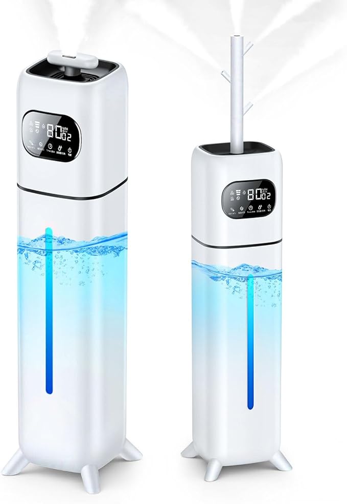 【10L超大容量加湿器・2WAY吹き出し口】加熱+超音波の2way加湿方式を選べるハイブリッド式加湿器です。10L大容量タンクを備え、1日中使用しても水を補充する手間がほとんどなく、就寝中も朝まで途切れない潤いを保ちます。40畳まで対応、広い寝室やリビング、オフィス、事務所、一人暮らしのアパートなどに適用。さらに、従来とは異なり、「360 回転ノズル」と「枝分かれノズル」の2種類の吹き出し口を切り換えられます。ピンポイントの集中加湿ができれば、水蒸気をより高く・広く拡散させることもでき、うるおった空気が部屋の隅々まで行き渡らせ、部屋全体ムラなく加湿。一体化されたタワー式で水漏れの心配はありません。