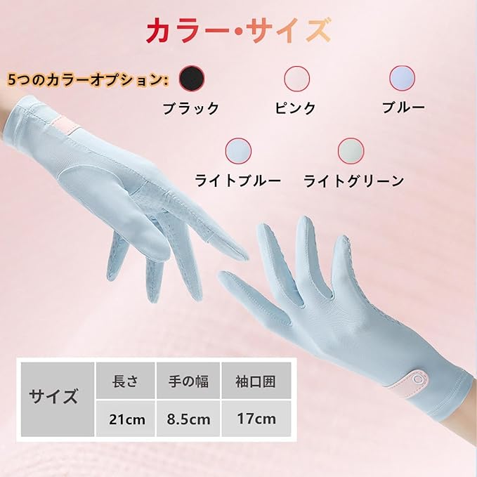 【UPF50+・紫外線対策】暑い夏の時期で紫外線対策から日灼けしやすい肌を守ることが重要になります。業界最高水準のUPF50+、紫外線カット率99%以上、手首までしっかり日焼けからガードします。お肌にとって有害となる紫外線をカットだけでなく、肌荒れ対策にも役が立て、手に潤いを保ちます。