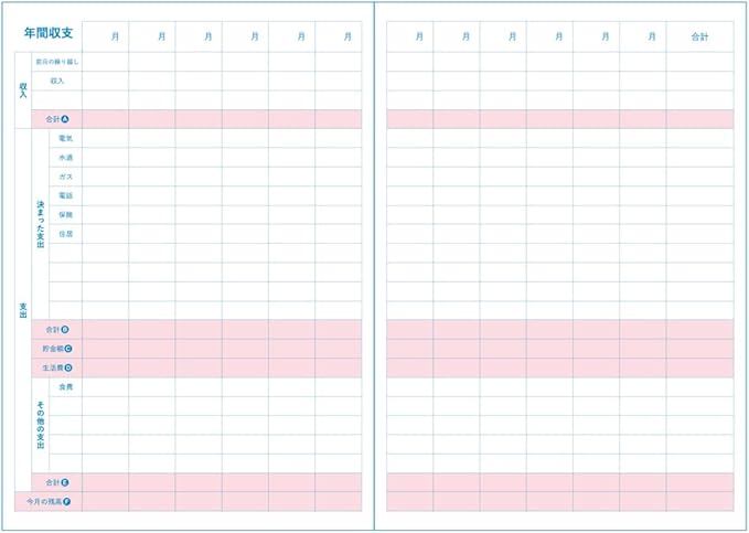 初めての方でも簡単につけられる家計簿です。空欄を埋めるだけで予算が立てられるので貯金がしやすく使い続けやすいのが特徴です。やりたいことリスト・貯金の記録を記入することで先を見据えながら計画することができ、貯金や予算立ての際に役立ちます。