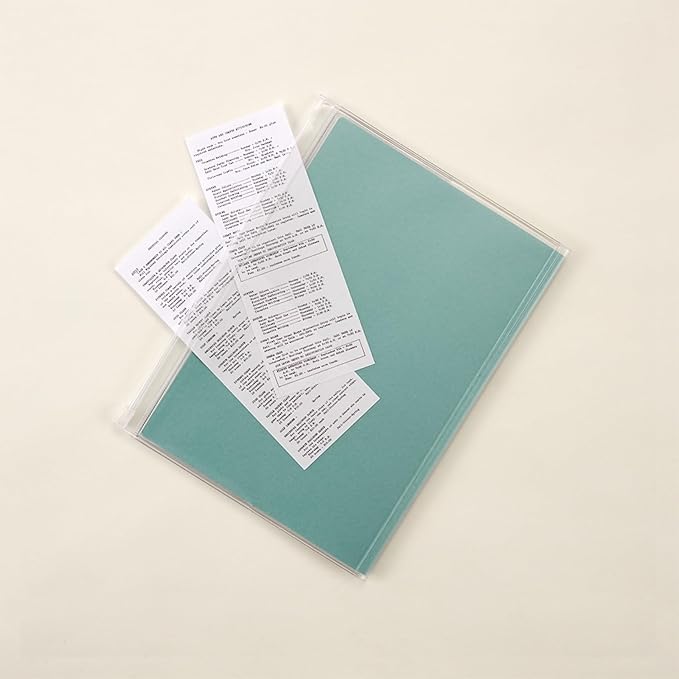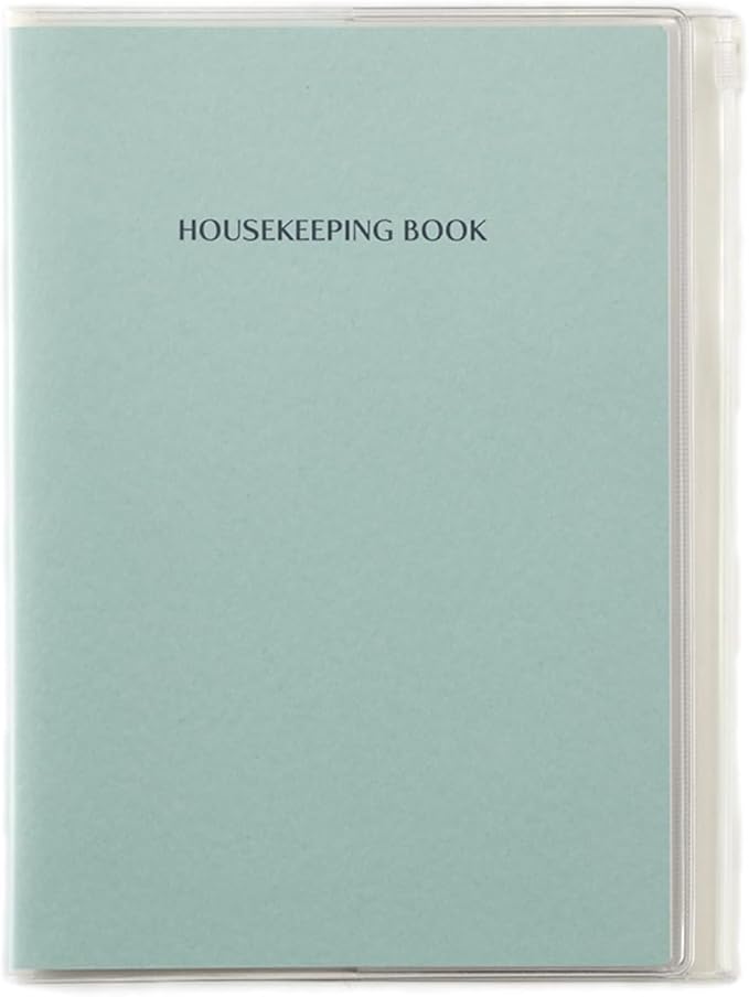 表紙は暮らしに馴染む、飽きのこないシンプルなデザイン。レシートなどのちょっとしたものを保管できるファスナーポケット付きです。