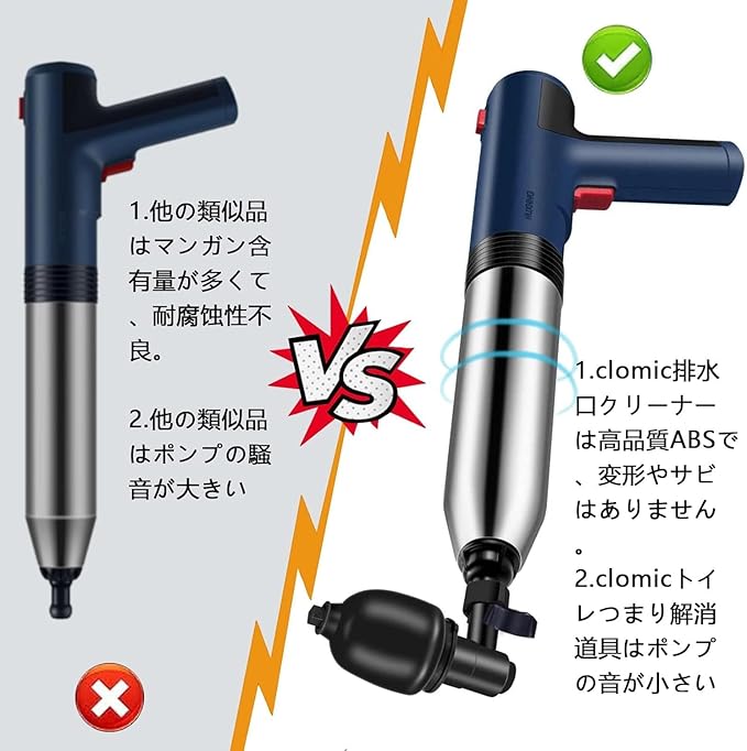 【適用範囲が広い】4つの異なるゴムヘッドが付属して、多くのタイプのパイプの诘めに適して、状況によってゴムヘッドを選ぶことができます。パイプ掃除機は、トイレ、排水口、キッチンのシンク、シャワー、床の排水口、バスタブ、トイレ 風呂、台所、洗面台の排水管?排水パイプなどに使用でき、髪の毛、布、油、その他のゴミによる詰まりを取り除くことができます。