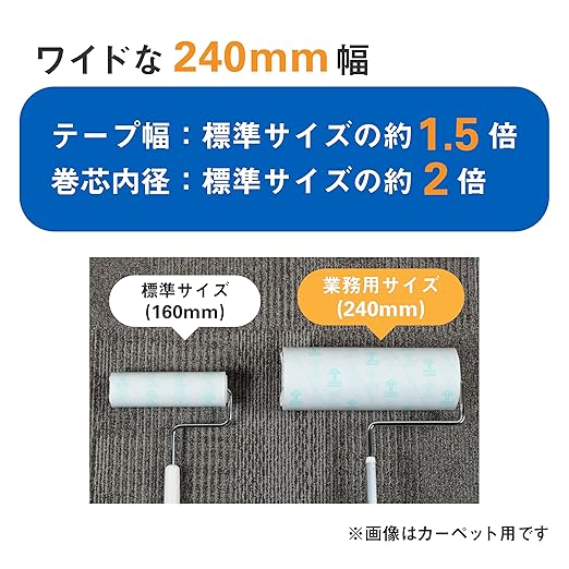 〇通常よりもテープの幅が長く、広い空間でも効率よく掃除が出来ます。