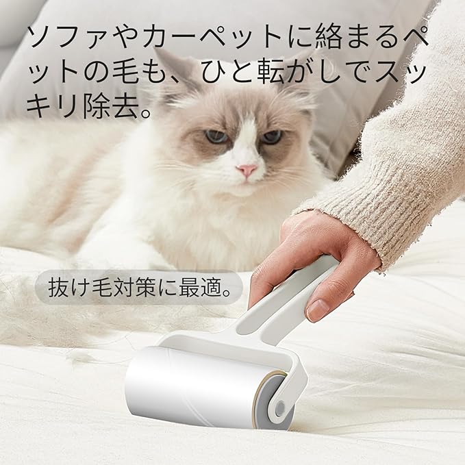 【衣類を守るやさしい設計】デリケートな衣類にも安心して使える設計で、繊維を傷めることなく浮き毛やホコリをスムーズに除去する。広い面積を効率的に清掃できるため、短時間で仕上げられる。粘着面に残留物が付きにくい仕様で、衣類を清潔に保てる。