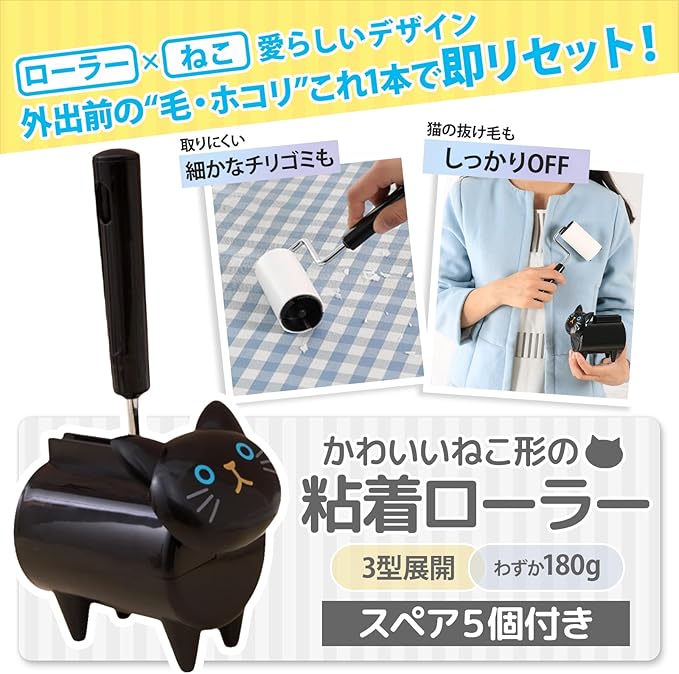 【外出先でも便利に使える】持ち運びしやすいサイズ感なので外出先や職場でも使いやすく、気になった毛やホコリをその場ですぐに取り除けるのが大きなポイントです。 【ねこの毛もスッキリ除去】ねこの抜け毛が気になる衣類や布製品にも粘着力がしっかり働き、毎日の掃除が手間なく簡単にできて清潔な空間を保つことができます。 【カーペットも簡単に掃除】カーペットに絡んだホコリや細かいゴミを巻き取りながら、表面を傷めずに掃除できるため、力を入れなくても快適に作業が続けられます。