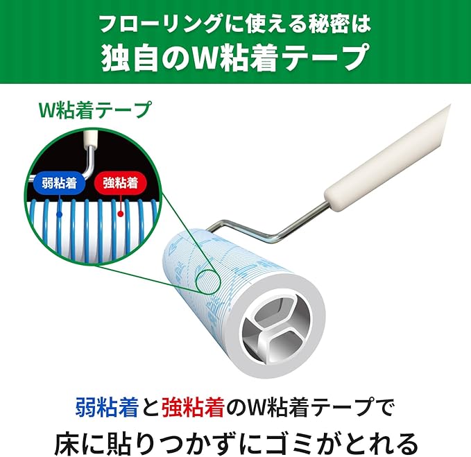 ●気づいた時にサッと使えるトレータイプ●フローリングからカーペットまで、どんな床にも使えます!●砂粒もしっかり取れるダブル粘着加工テープ●テープの端は粘着加工していないので、めくりやすく、手が汚れません●転がす方向がわかる矢じるし印刷●※こちらの商品はパッケージに変更がありました。従来品が無くなり次第画像のデザインになります。(製品本体に変更はありません)