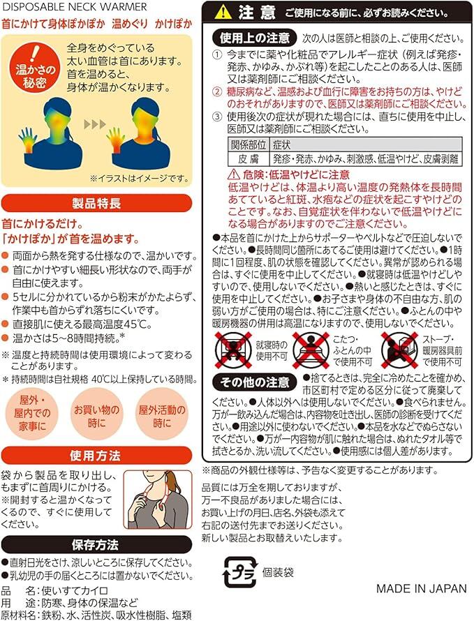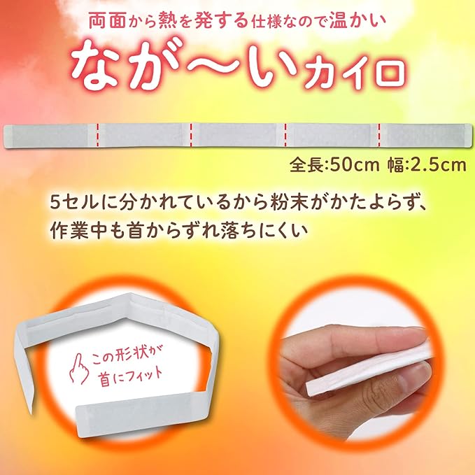 「首にかける」新しいタイプの使い捨てカイロです。肌に直接あててもご使用できます。