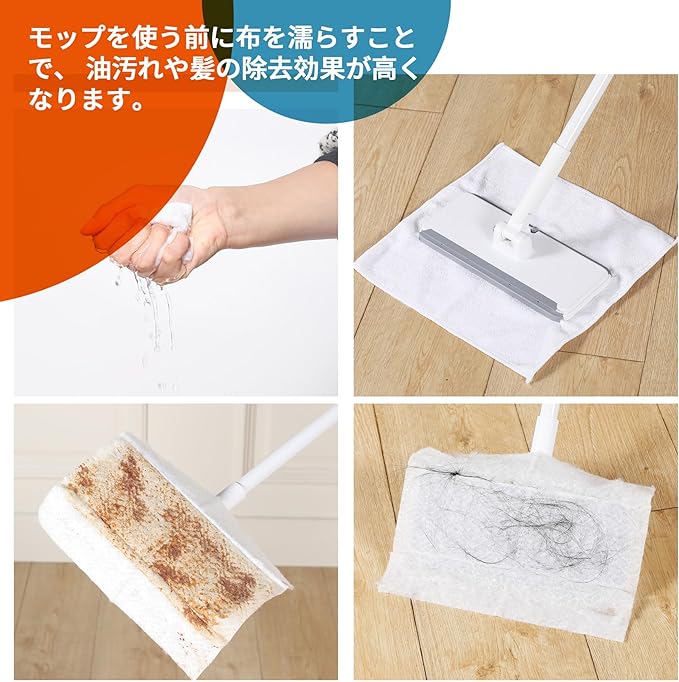 【使いやすい雑巾ワイパー】フロアワイパーのヘッドは360度回転できるので、使いやすいです。シート部分は髪の毛、ホコリが取り込みやすい。【フロアワイパーのシート 対応簡単】簡単にぞうきんが取り付けられる。取り付けるシートは各社共通、ウエットシート、ドライシート、雑巾どちらも対応できます。