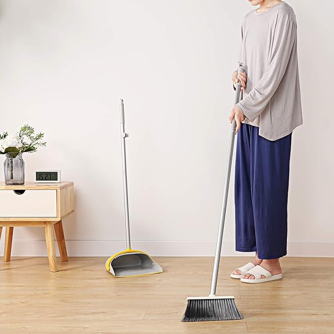 CLEANHOME ほうき ちりとり セット 立て式掃除セット ほうき 室内 屋外 コンパクト 収納可能 132cm調節可能 ノブ付き 自立式 防風式 軽量 腰曲げず 掃除可能 清掃用品 アウトドア 玄関 ガーデニング 庭 美容室 コンビニ ベランダ掃除 (グレー) | etshop