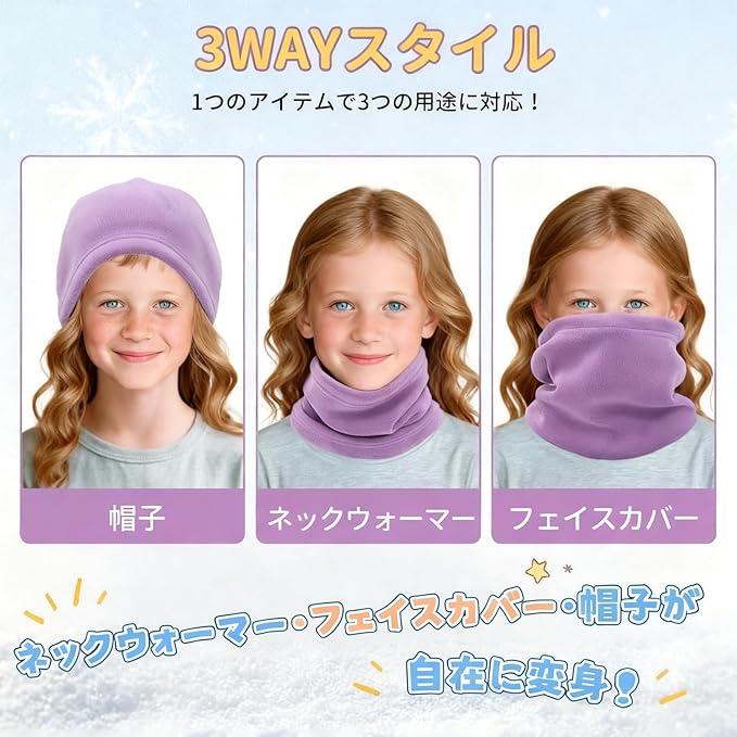 [Petasonien] ネックウォーマー キッズ ボーイズ ガールズ「3Way/防寒保暖/伸縮性/調整コード付き」ネックガード 秋冬用 通学/アウトドア/スポーツバイク/スノーボード用 子供用 ネックウォーマー 男の子 女の子