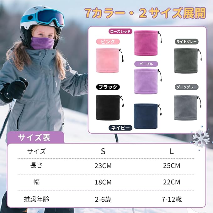 【360度防寒でしっかり保温】お子様の首元を360度すっぽりと包み込む設計で、体温で温まった空気を内部に効率よく閉じ込め、長時間にわたって保温効果を持続させるネックウォーマーです。通学路や雪遊び、スキーなど、さまざまな寒い環境で、お子様をしっかりと温かく守ります。