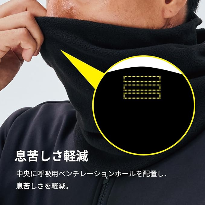 後方にゴムバンドを配置し装着時のフィット感を高めた、チューブタイプのネックウォーマー。