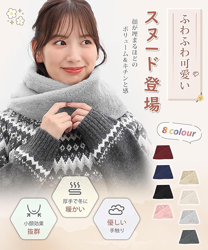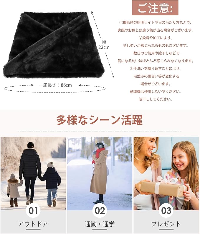 [MOWO] スヌード ネックウォーマー レディース 【本気で小顔に見える・ふわふわ可愛い・厚手で猫の毛の手触り】 秋冬 無地 エコファー 柔らかい 防寒 一周巻き 軽くてあたたかい 優しい肌触り ボリューム メンズ | etshop
