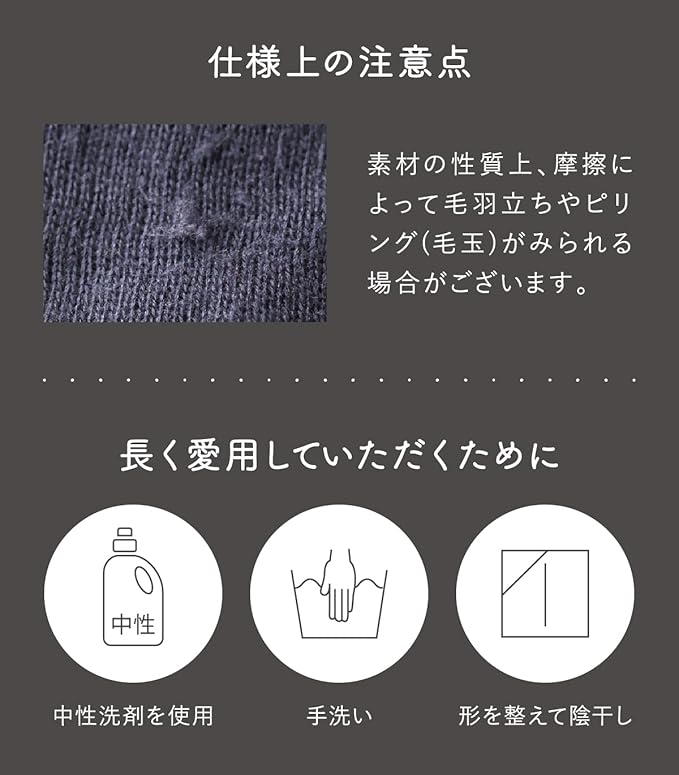 【内側シルクで肌に優しい】<チクチクしない><汗を吸い冷え予防><においや蒸れを軽減する>シルクの吸放湿性は非常に高く、綿の約1.5倍。汗などの湿気をしっかり吸いとり、気化熱による冷えから身体を守ります。シルクは「第2の皮膚」と呼ばれるほど人の肌と馴染み、優しい素材。滑らかな肌触りで、チクチクしやすい首元にも安心してご使用頂けます。