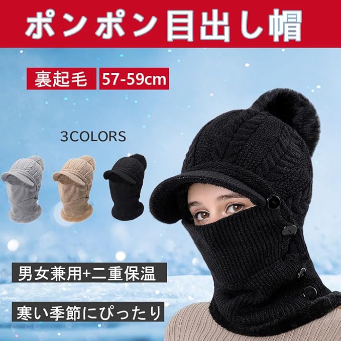 [LeafIn] 2Way&暖かい裏起毛 ニット帽子 レディース ネックウォーマー ネックフェイスカバー ビーニー ニットキャップ ポンポン 厚手 裏起毛 ボア 防寒防風 スノーボード スキー 防寒具 自転車 バイク 釣り 登山 通勤 通学 冬 | etshop