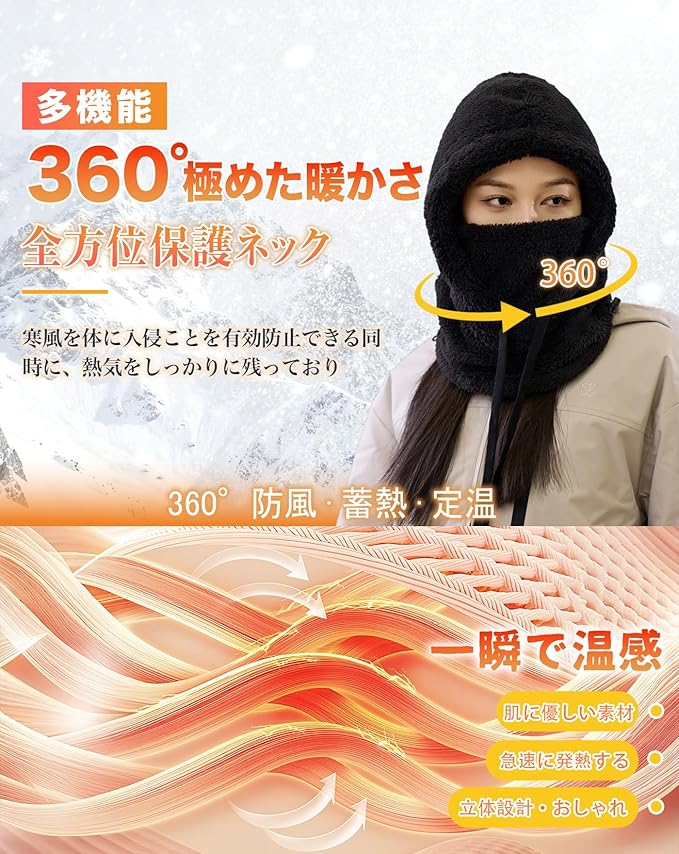 このネックウォーマーは日本人に適した3D立体設計で、驚いフィット感、首のゴム紐による調節可能なシェーピング補助で、顔型の頭型に最大限にフィットし、ネックウォーマーは保温とスタイリッシュさを兼ね備えています。