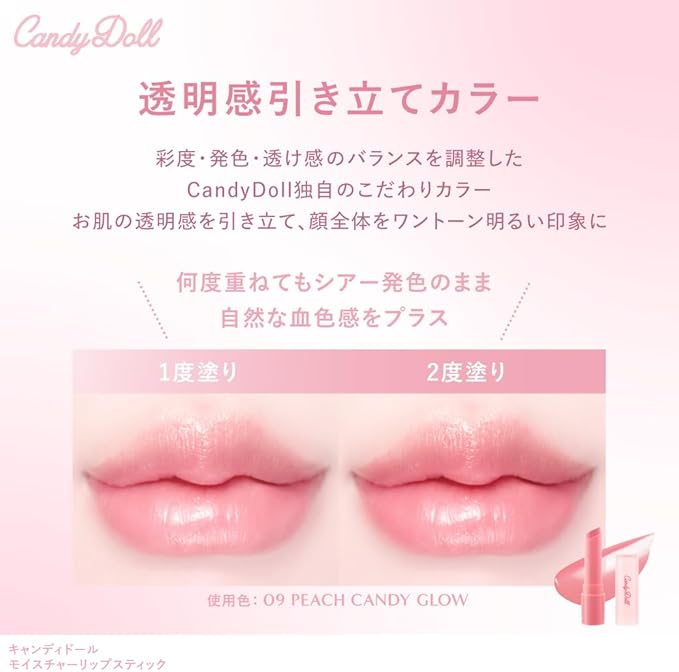 益若つばさプロデュース CandyDoll キャンディドール モイスチャーリップスティックP<09>ピーチキャンディーグロウ [ピーチカラー 粘膜カラー 保湿 血色感 透明感 桃 唇ケア シアー発色 リップカラー リップバーム リップクリーム グロス 乾燥 皮むけ ツヤ感]
