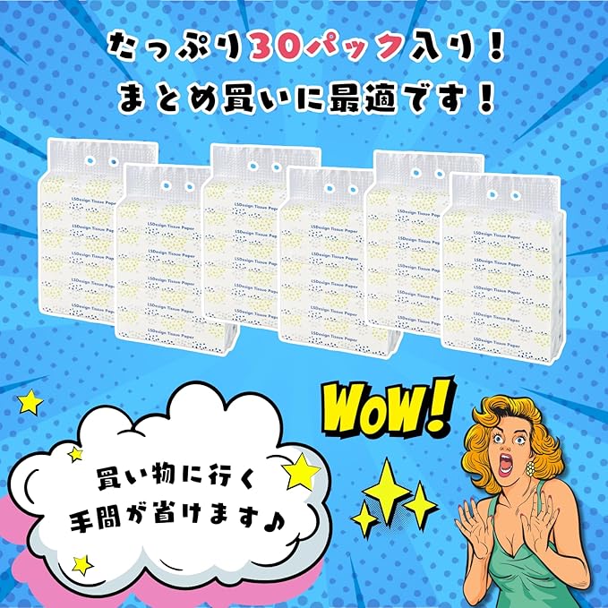 【特徴】箱をなくした省スペース設計のティッシュ ソフトパック。柔らかな質感で使いやすく、オフィスやご家庭の常備用にも最適です。一般的なティッシュペーパーやソフトティッシュと同様に、日常のあらゆるシーンでお使いいただけます。