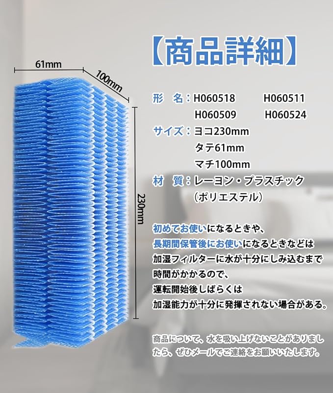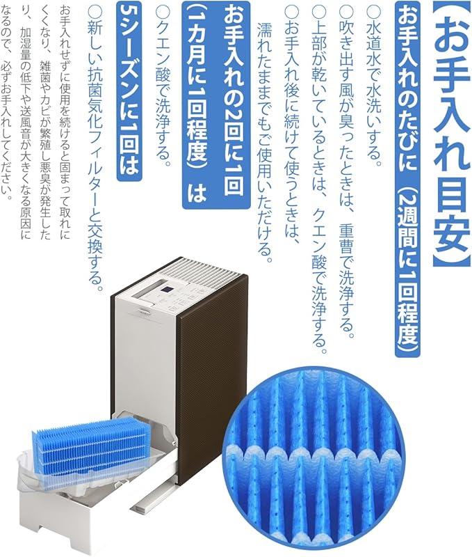 【形名】 H060518 / H060511 / H060524 / H060509 ハイブリッド式加湿器交換用 抗菌気化フィルター。定期的に水アカを取ると吹き出す風が臭ったとき、抗菌気化フィルターを洗浄してください。