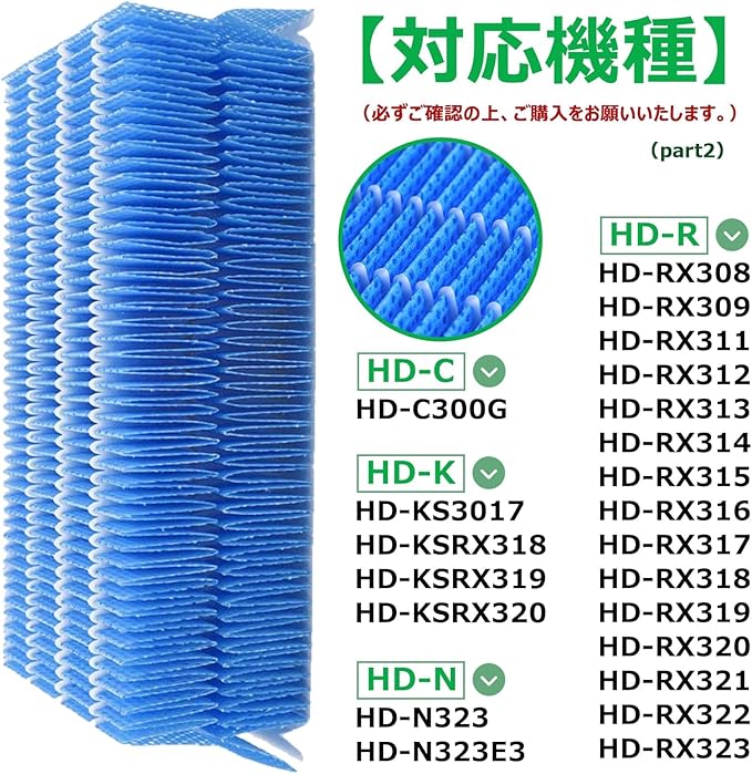 【形名】お手入れタイプ H060517 抗菌気化フィルター (H060507 と H060510 は H060517 に統合となった。)/ 使い捨てタイプ H060523 カンタン取替えフィルター 。材質:レーヨン・プラスチック。パッケージ内容: H060517 / H060507 / H060510 抗菌気化加湿フィルター x 2