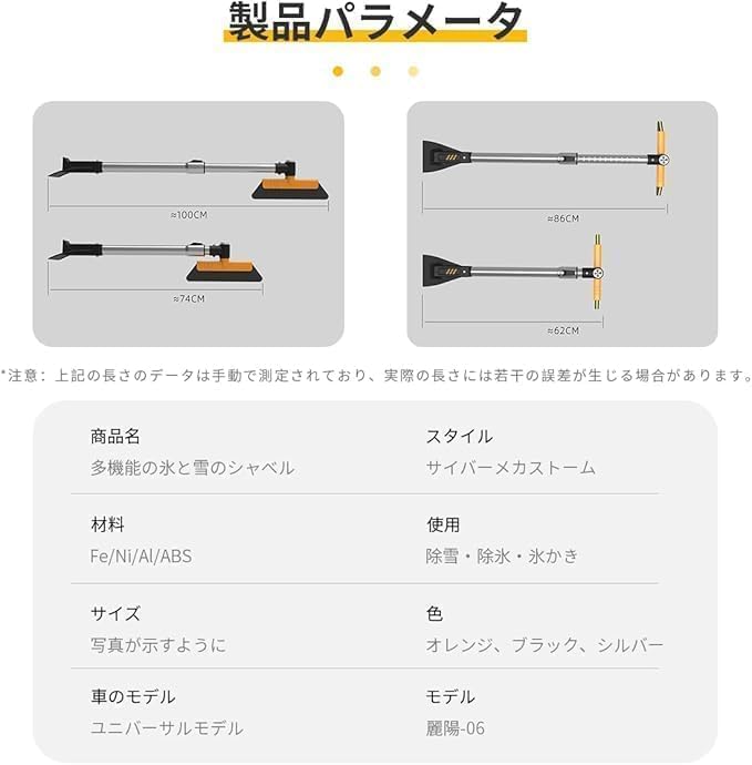 【多機能】車輌用マルチ機能除雪ブラシ、雪払い、氷削り、霜取りなど、取り外し可能、13段階の調節可能な長さ、360度回転ブラシヘッドなど、複雑な工具不要。この一本の除雪ブラシで愛車の冬の雪払いや氷削り作業がすべて完了します。