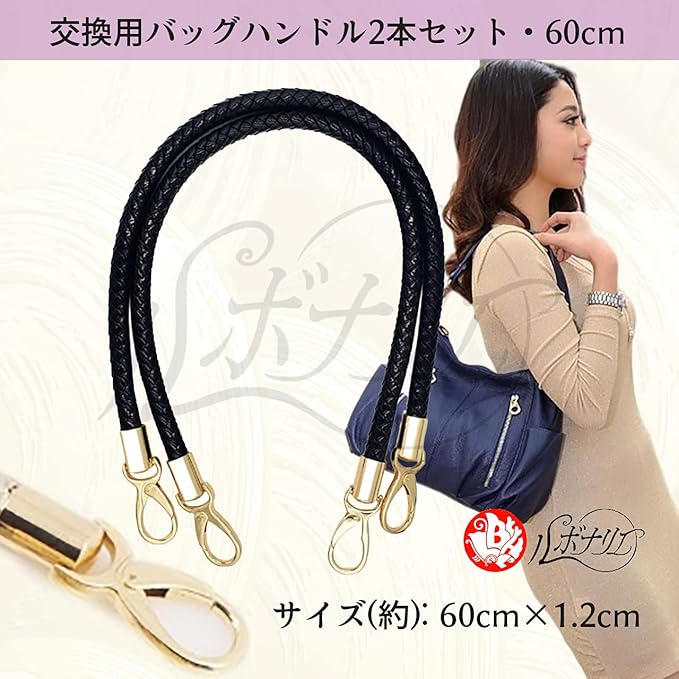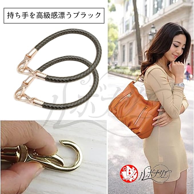 持ち手を高級感漂うブラックに!修理・交換用バッグハンドル2本セットです。