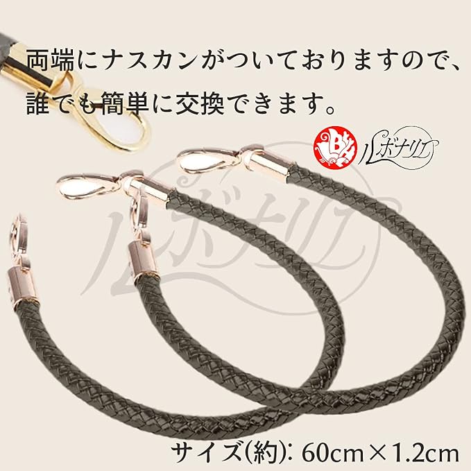両端にナスカンがついておりますので、誰でも簡単に交換できます。高品質なPU革で製作された網目模様ですので、オシャレかつエレガントなルックスに仕上がります。