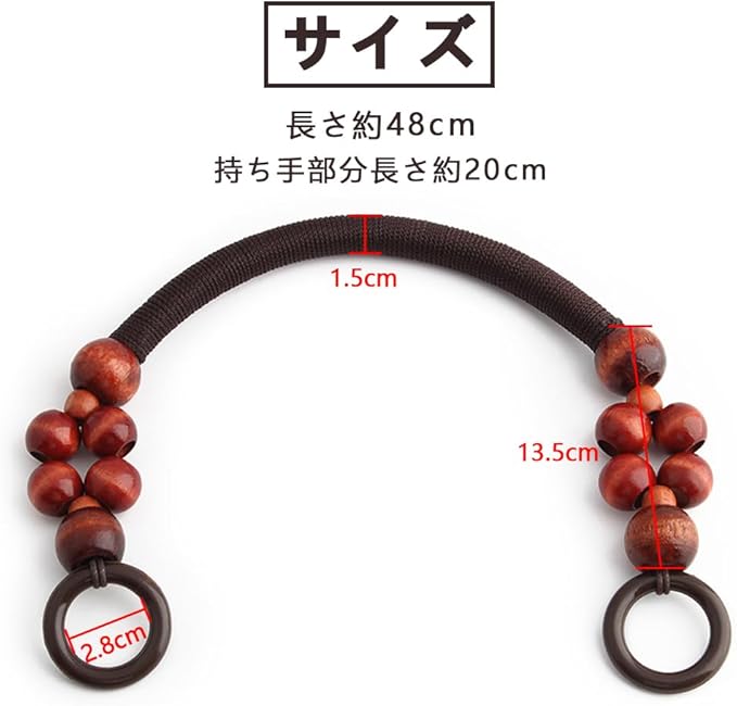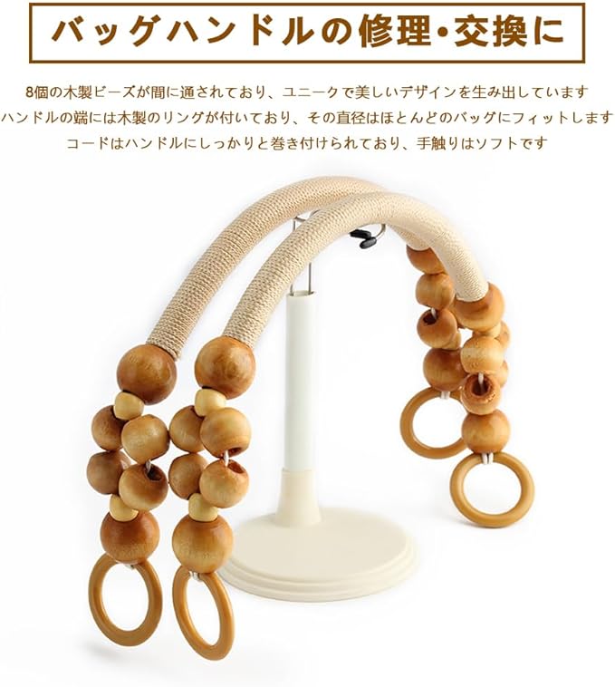 【簡単な取り付け】取り付けはシンプルで迅速です。ハンドルはバッグにしっかりと固定されるため、緩むこともなく、安全にお使いいただけます。木製ビーズが加わることで、バッグにユニークなファッションタッチを施します。