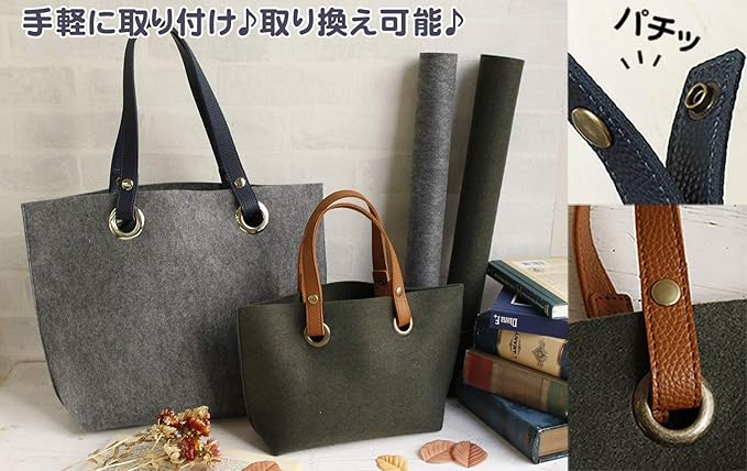 ボタンをパチッとするだけで簡単にバッグの持ち手をとりつけられます。
