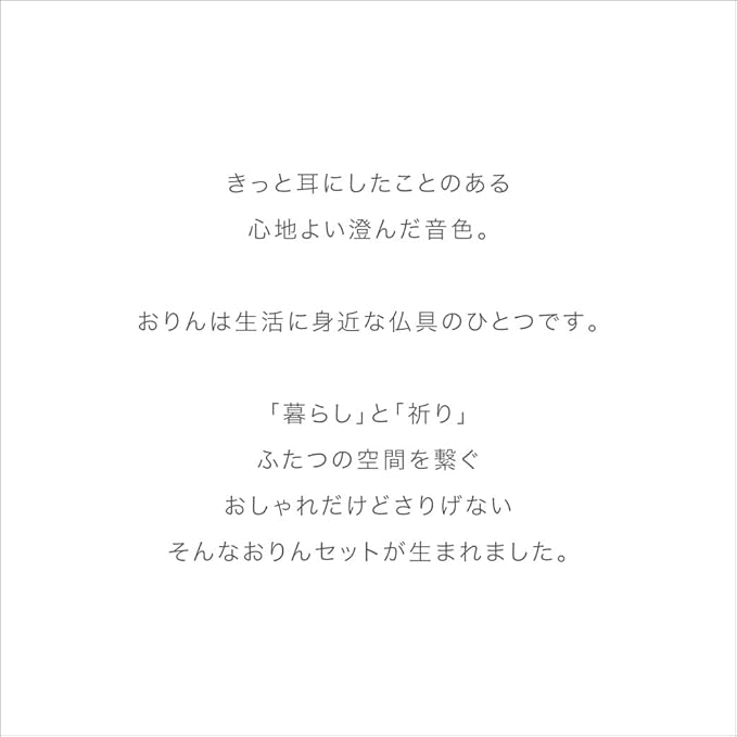 【おりん】:真鍮、色付け加工【おりん敷】:フェルト【台座・りん棒】:ウォールナット