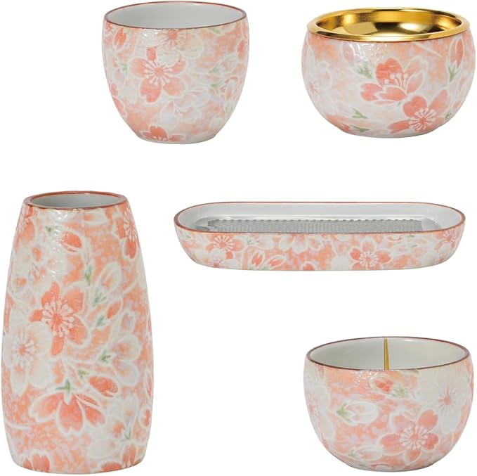 サンメニー 和 モダン 仏具 5点セット 本格 有田焼 日本製 インテリアに馴染む おしゃれ お花 ろうそく 線香 お茶 ご飯 現代仏壇 お仏壇 仏具小物 天音 雅桜ピンク フラワースタンド キャンドルスタンド インセンスホルダー タンブラー コンパクト 小さい 小物 有田焼(陶器) 仏具セット 花立 灯立 香炉 茶湯器 仏器 [Sunmany] | etshop