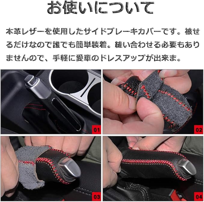 3:簡単装着:本革レザーを使用したサイドブレーキカバーです。被せるだけなので誰でも簡単装着。縫い合わせる必要もありませんので、手軽に愛車のドレスアップが出来ま。