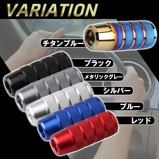 お気に入りの車だけど、毎日乗っているとなんだか飽きてしまった… 車内の内装をこだわりたいけど、飾るだけじゃ物足りない… 個性をだしてオンリーワンの車にドレスアップしたい! そんな方にオススメなのが、簡単取り付けで社内の雰囲気を一気に変えてくれる圧倒的存在感を誇るシフトレバーです! 重厚感・高級感あふれるチタン焼け風に仕上げられたのアルミニウム合金を採用。 メタリックカラーが美しく、車内の雰囲気を上げてくれます。
