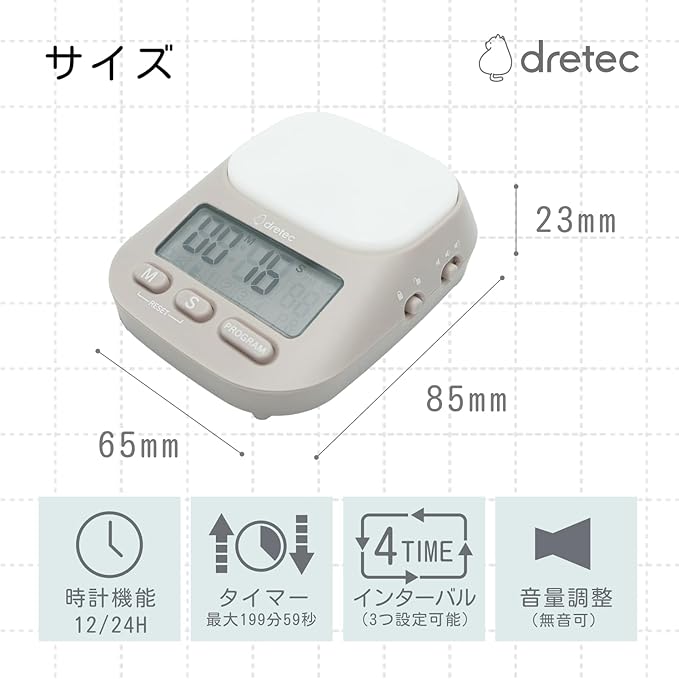 ドリテック(dretec) 【オンライン限定カラー】 ラーニングタイマー 私のルーティン 勉強 カウントダウン 消音 音量切替機能 最大199分55秒 繰り返し インターバル 時計 光 ホワイト | etshop