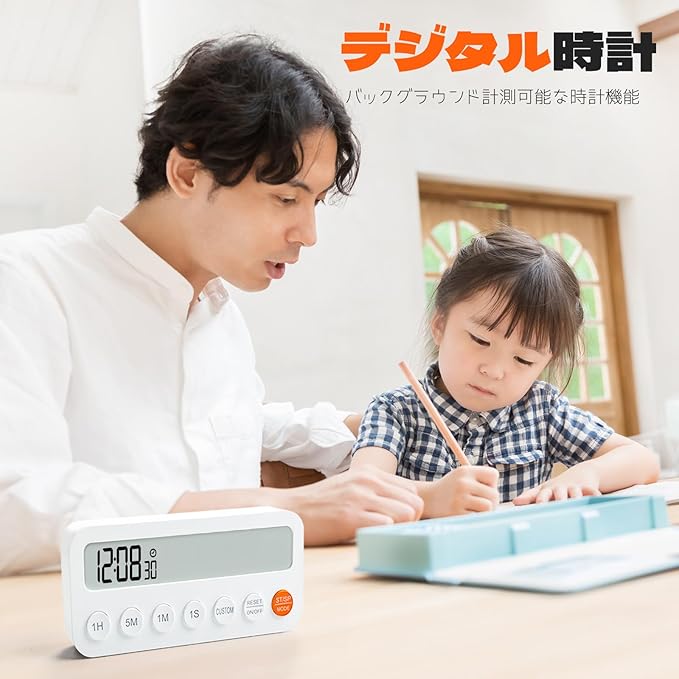 【多機能でシーンに合わせて活用】時計、タイマー、カウントダウン、カスタムカウントダウンの4機能を備え、勉強、運動、キッチンなど、様々なシーンで時間管理が可能です。■動作には2本の単四電池(別売)を使用し、詳細な日本語説明書付きで初めての方も簡単にお使いいただけます。