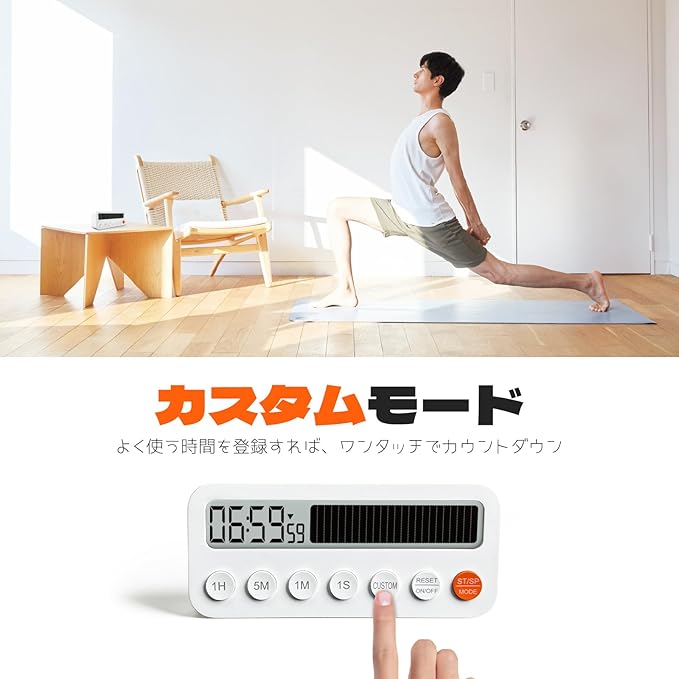 【カスタムタイマー】必要な時間を事前設定可能な「カスタム(CUSTOM)」機能搭載。ワンタッチで即スタート!日々のルーティン作業に最適。繰り返し行うタスクの時間効率を最大化します。