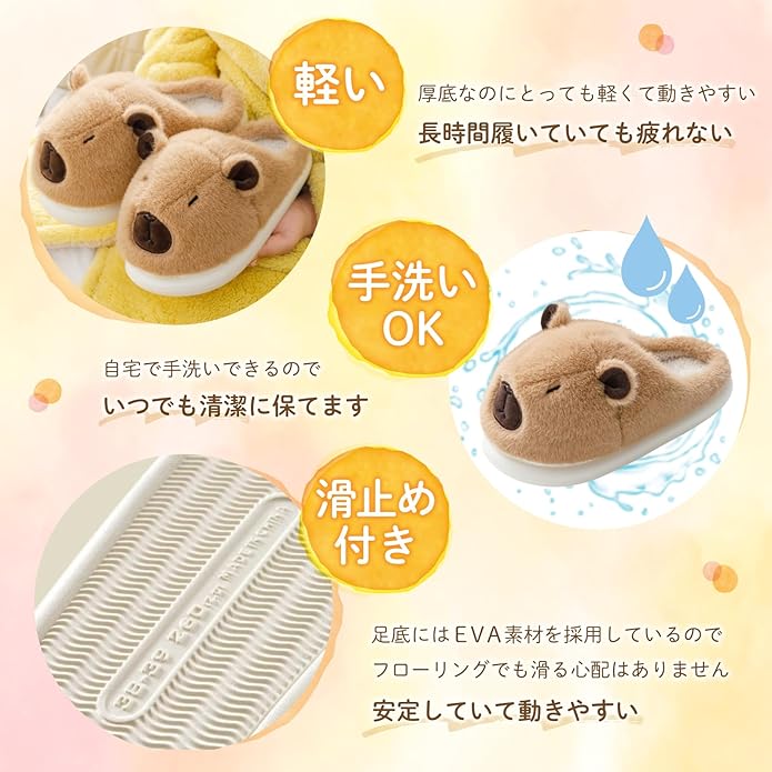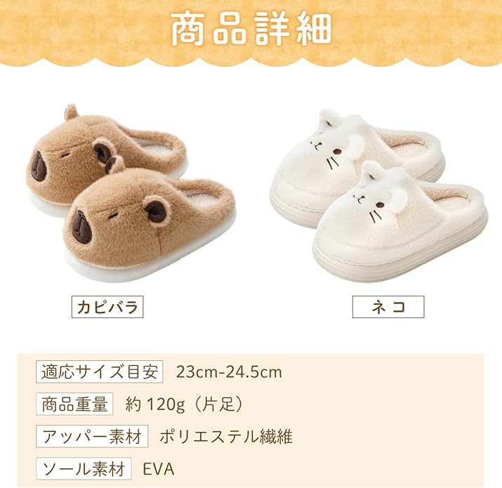 【癒しのデザイン】ぶさかわのカピバラとほっこり猫の可愛いルームスリッパ