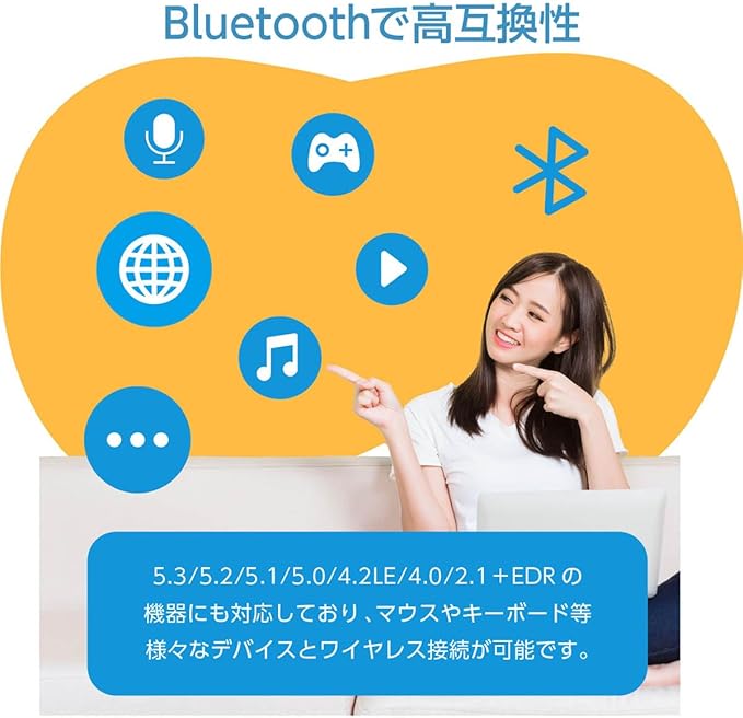 【高速通信】Bluetooth 5.4で最大20mの安定したワイヤレス通信を実現。